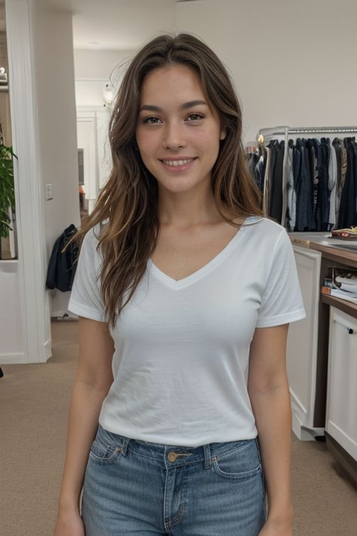photograph of a cute adult girl, black thick hair tied to the back, yellow skin, freckles, yellowish, innocent, avarage size and youthful face, smile without showing teeth, clossed eyes, tilted head to left, wearing a light blue collarless t shirt and denim, fit on room, standing infront of mirror shot, analog black color watch on right hand, right hand on right leg touching, left hand holding iphone and direct to the mirror for take the picture, wearing white shoes with 2 long welco, Porta 160 color, shot on ARRI ALEXA 65, bokeh, sharp focus on subject, shot by Don McCullin, nsfw, (natural skin texture, hyperrealism, soft light, sharp), (perfect round eyes:1.3), Capture the essence of her beauty, Enrich the composition with soft, diffused natural light that accentuates the textures and colors, creating a timeless and culturally rich image, EyeDetail-SDXL, fFaceDetail-SDXL
