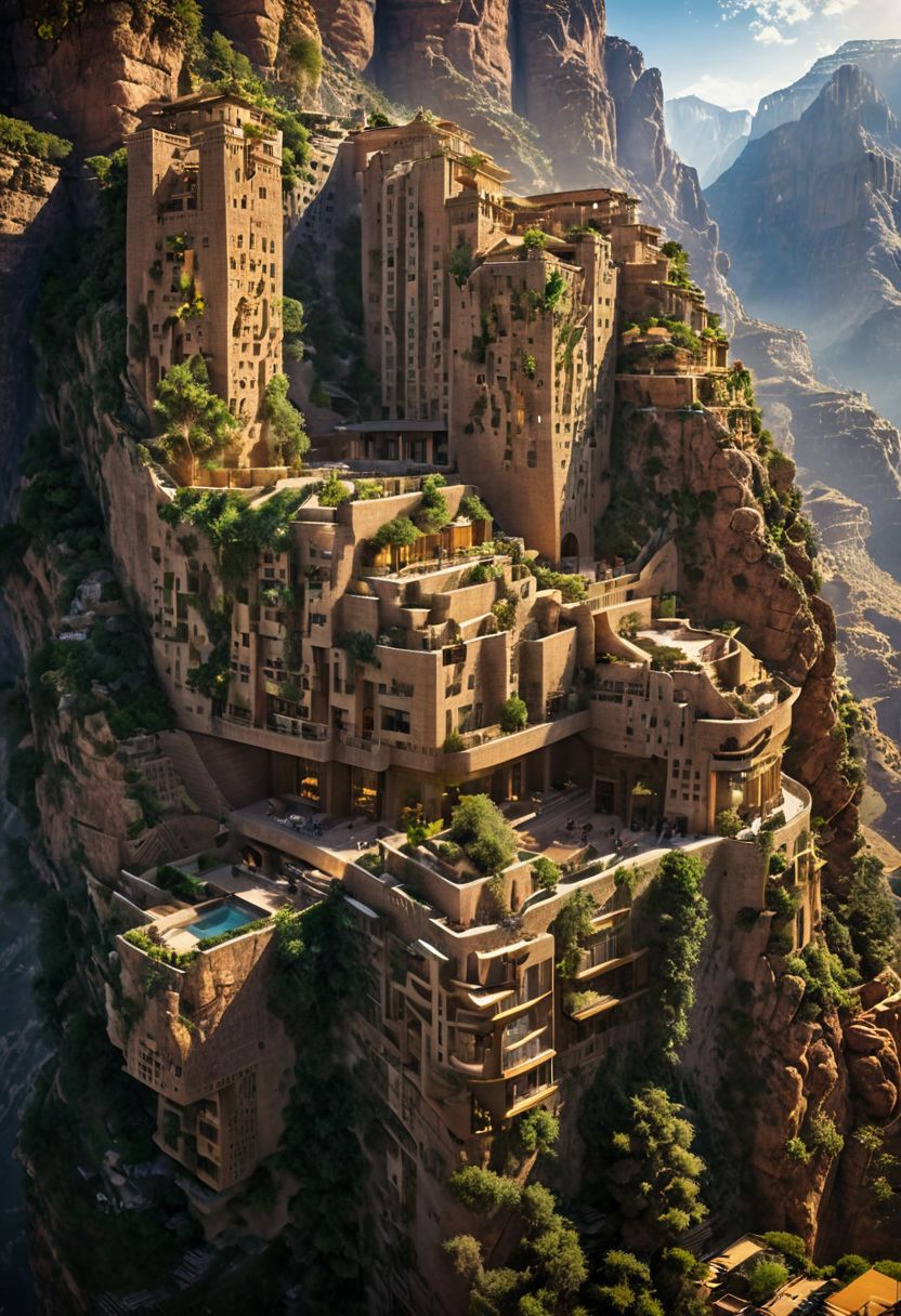(The colonial city of the future, in the mist-filled Grand Canyon, on an unknown Earth-like planet, 2 moon on sky, Spaceship flight connects colonies, waterfulls:1.3), (Machu Picchu, a mountain settlement, incredibly spectacular:1.2), (Mario Botta:1.3), (avant-garde, future, reality, science fiction, photorealistic), (modern architecture:1.2), (Large Files, Ultra Realistic, 8K, 16k, FHD, HD, VFX, Perfect, Photography, composition, Architecture Sales Photography, Architecture Competition, Ultra High Resolution, Cinematography, High Resolution Image:1.1), (dramatic lighting, direct sunlight, ray tracing, clear shadow:1.2), (real landscape:1.1), (blurred background:1.0), (urban background, more_details) , ac_neg1, great lighting, clear, hillscastel, extrusionbuilding, vertical