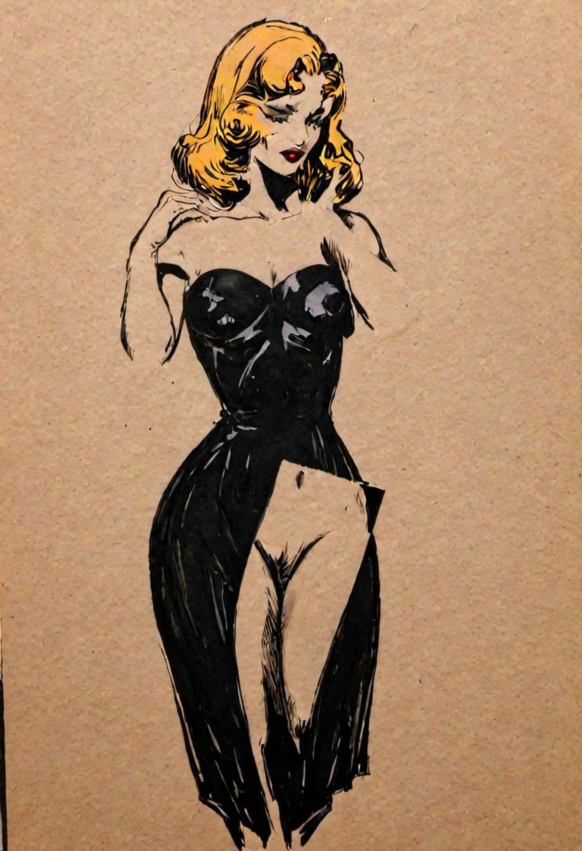 majikfone, taking a photo of a comic book illustration of a woman in a black dress, by Roy Krenkel