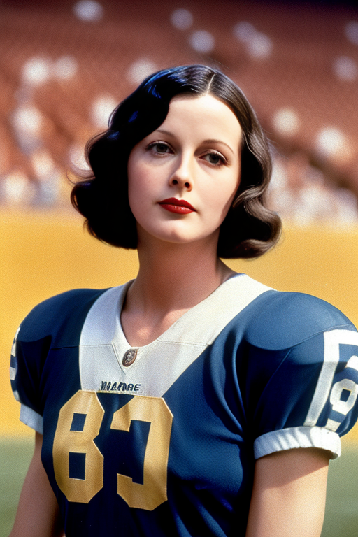 2016 color photograph of (h3dy14m4rr:1.0) with a (asymmetrical straight bob haircut) wearing a (football uniform)