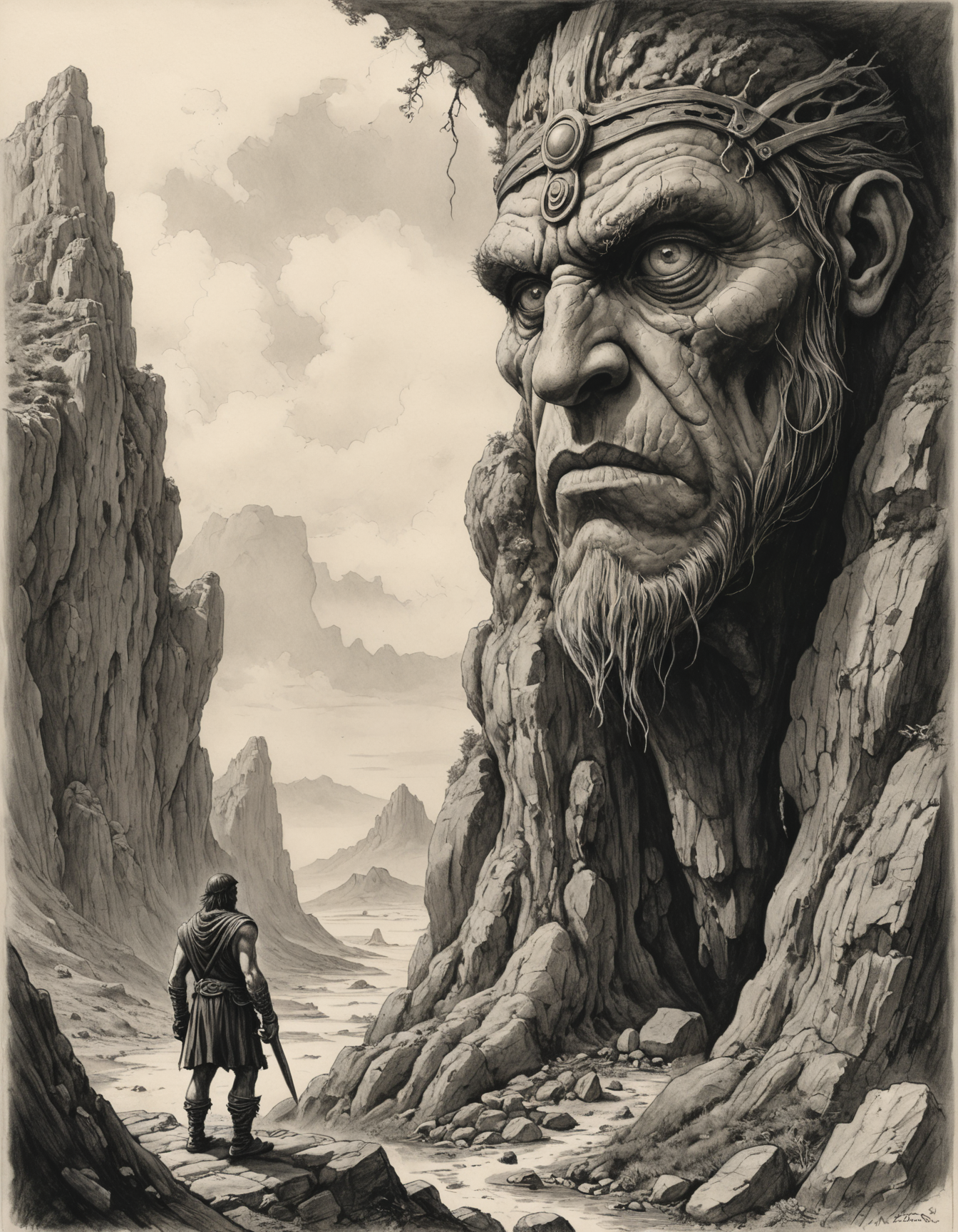 ([by David A. Hardy|by Jacques Tardi]:1.5), (In the land of myths and legends, The Cyclops roams, a solitary giant with a single piercing eye, guardian of ancient treasures.:0.5) (Pencil Sketch Drawing:1.3) <lora:xl_more_art-full_v1:0.5> <lora:add-detail-xl:0.7> <lora:MJ52:0.4>