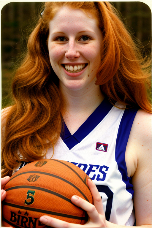 ChloeB wearing a basketball jersey, <lora:ChloeB_3192:1>, analog photograph, cute smiling face, beautiful redhead woman