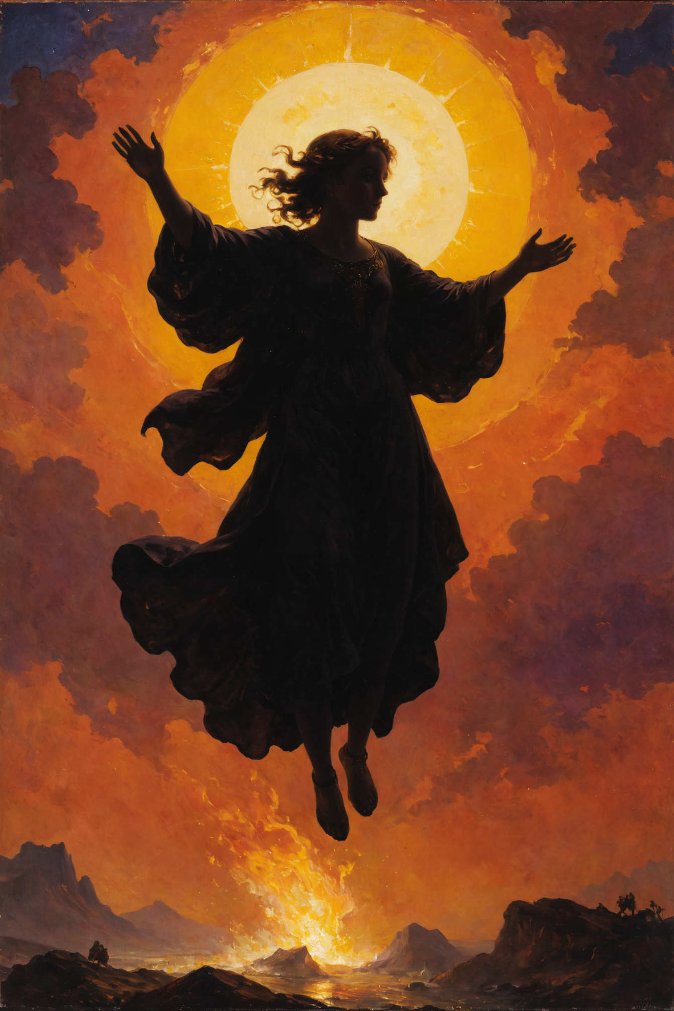 (work of art by Arthur Hill Gilbert and Solomon Nikritin:1.2), oil on canvas, silhouette incandescent light, supernatural andbaleful and monumental atmosphere, (high-spirited permanent rose and royalpurple colors:0.1), exceptional details, no blur, shallow depth, <lora:xl_more_art-full_v1:0.5> <lora:add-detail-xl:1.0> <lora:r3mbr4ndt_SDXL-step00020000:0.8> r3mbr4ndt