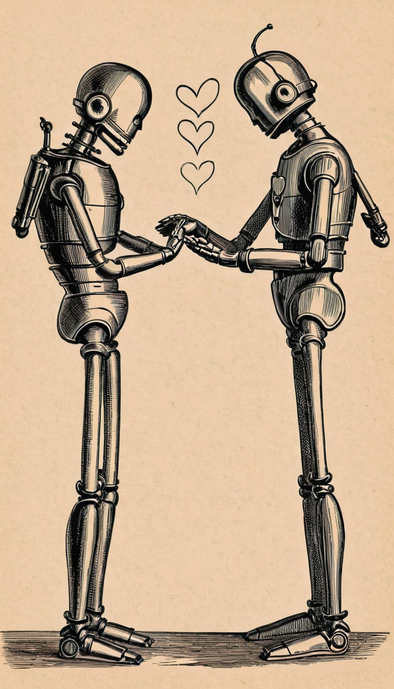 robot in love <lora:vntg-line-art-v2:1> vntg, line-art