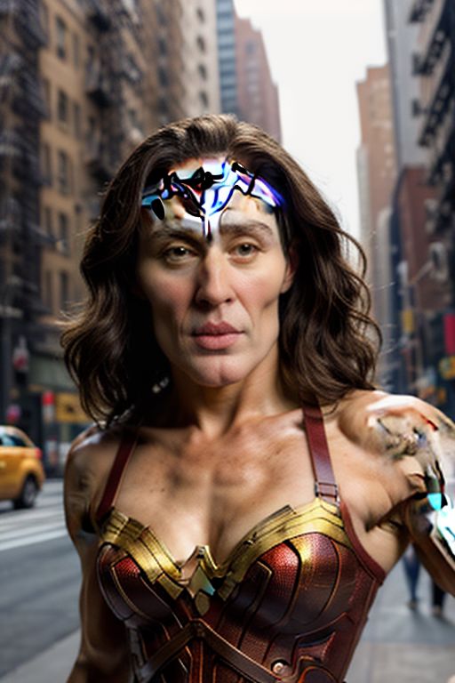 <lora:handsomize_x_v1:1> masterpiece, best quality, portrait, sparkle, handsomize wonder woman, pose, muscular, new York city,