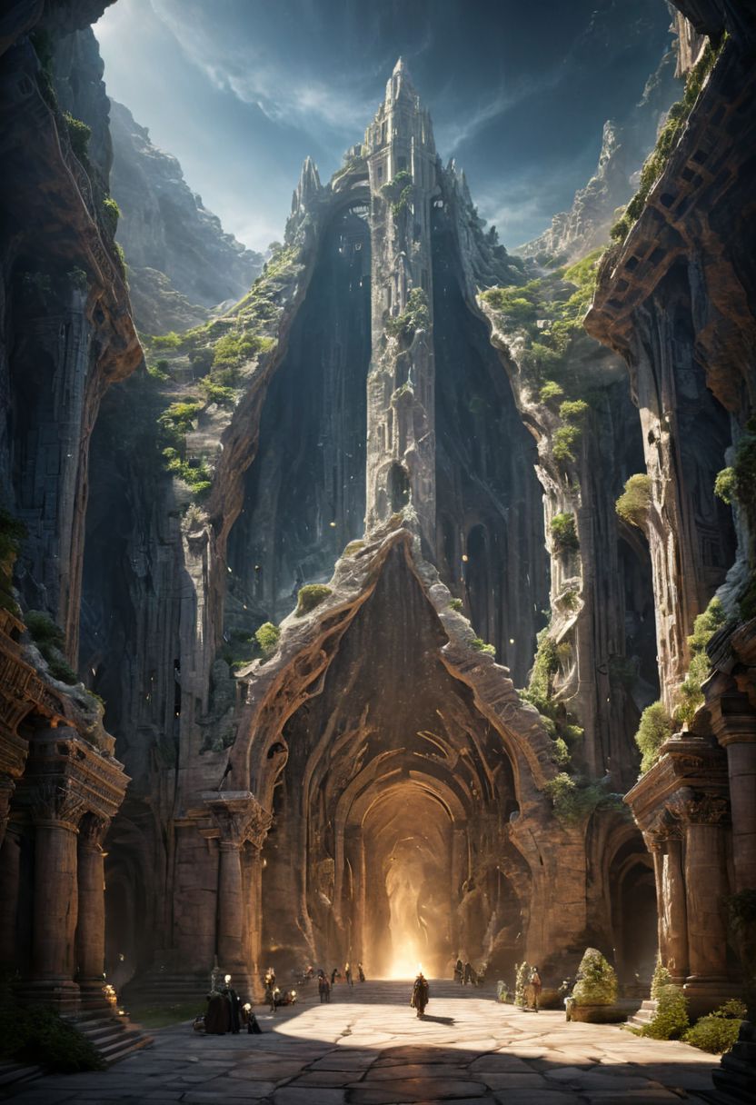 (POV view , DOF, first people view from the entrance, low angle shot:1.4), (Ancient civilization, Alien Prometheus movie scene, dune movie scene:1.5), Emerging from the embrace of shadow, the last wanderer steps into a realm woven by the gods. In an ancient ruin that breathes secrets, their journey unfolds as the universe unveils the dance of light and darkness. Fighting the Forgotten Guardians and pursuing the Cone Relic, they tread a path of danger and awe. From the silent depths of the catacombs to the star whispers of ancient observatories, every discovery peels back the veil of reality. Facing the guardians of the abyss, seeing the majesty of the crystal dragon, the last wanderers embrace their destiny, not as a harbinger of redemption, but as seekers in the labyrinth of time, a mystery that echoes the eternal questions of existence itself. (Large Files, Ultra Realistic, 8K, 16k, FHD, HD, VFX, Perfect, Photography, composition, Architecture Sales Photography, Architecture Competition, Ultra High Resolution, Cinematography, High Resolution Image:1.1), (dramatic lighting, direct sunlight, ray tracing, clear shadow:1.2), (real landscape:1.1), (blurred background:1.0), (urban background, more_details) , extremely detailed, hillscastel, <stardeaf-cold-arc>, great lighting, clear, Neo Classic