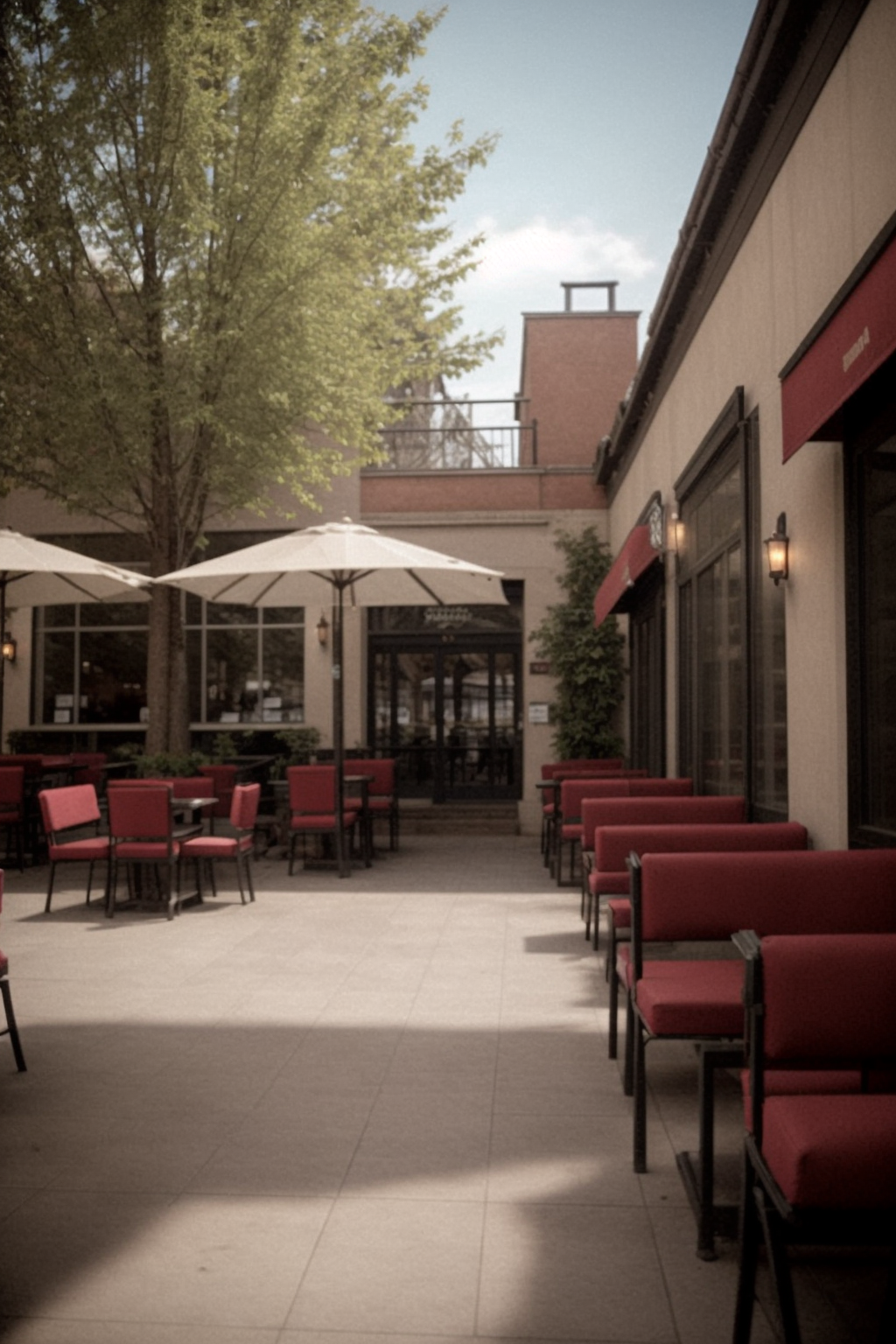 color noise,Grainy Images,realistic, masterpiece,sharp photo, outdoor, a restaurant, many empty seatsï¼day light,Back to cameraï¼ <lora:Bad Quality and Grainy Images:0.5>