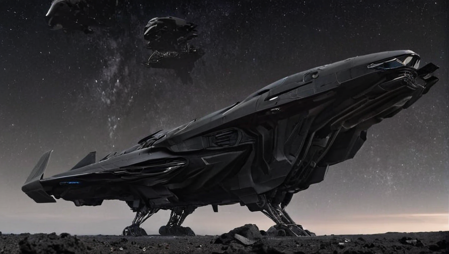 masterpiece, best quality, 8k, natural lighting, soft lighting, sunlight, wide-angle, (action shot of a black spaceship designed by origin, origin 600i, standing on groud outside on a futuristic spacestation port in the sky, people working on the spaceship, repairing it:1.3) <lora:starcitizen-lora:0.8> art by mooncryptowow black reventon telsa:.4 ((zaha hadid influence)) flying spaceship <lora:SDXL_Black_Sa_May:1> black
