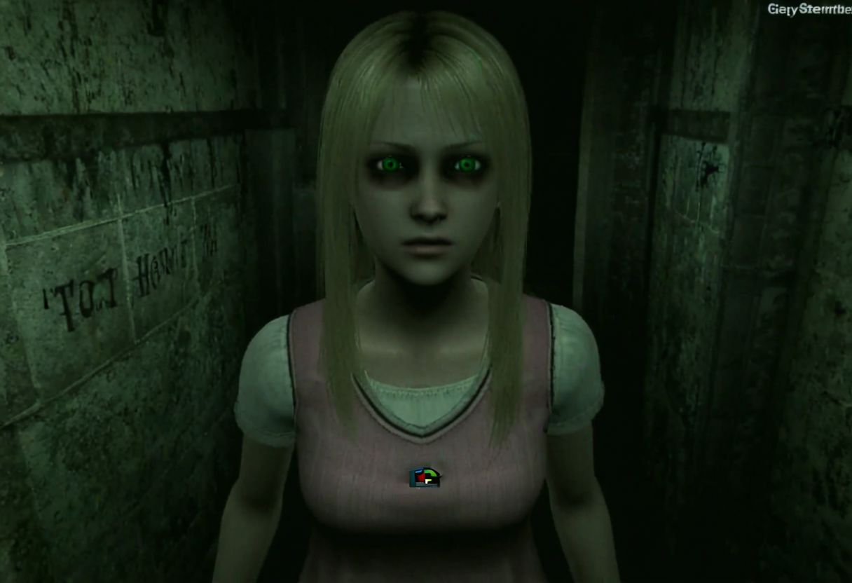 white skin girl, thin, oval face, green eyes, almond eyes, straight nose, blonde hair, long hair, straight hair, horror pink style, 3d model, horror protagonist,female, PS2, PlayStation japan horror, low quality, silent Hill 2, Resident Evil, octane render,detailed, volumetric, dramatic lighting, eerie, dark, spooky, suspenseful, grim, detailed, distressed, edgy, rock and roll vibe, dark, mysterious, haunting, dramatic, ornate, PlayStation 2 graphics, PlayStation 1