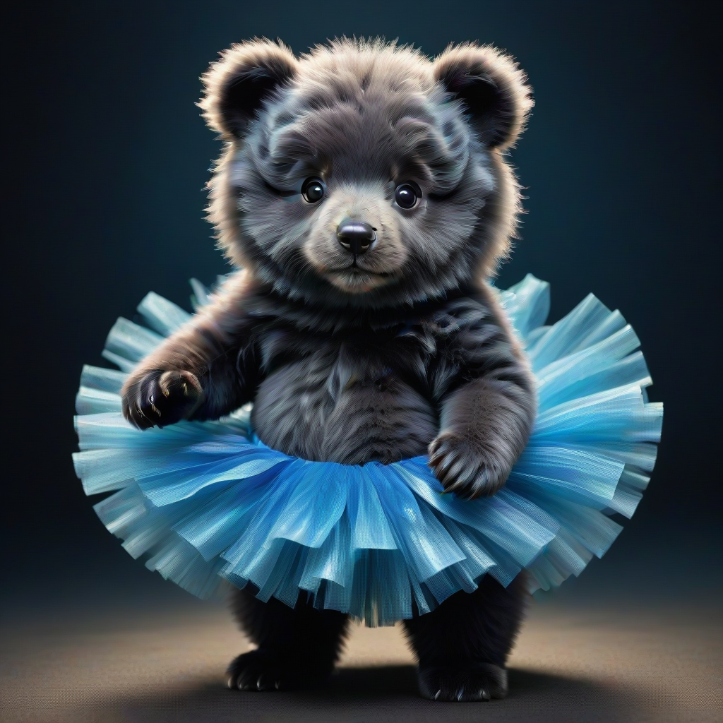print of print, in style of Utagawa Hiroshige. An adorable blue fluffy silly little bear with shaggy hair wearing tutu, 8k resolution, hyperdetailed photograph, shiny, beautiful lighting, iridescent lighting, iridescent colors, perfectly shaded, out of this world beautiful, smooth, clean, rich