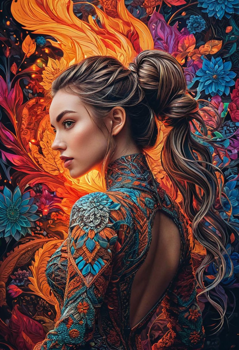 photo of TWbabeXL01, NSFW, official art, unity 8k wallpaper, ultra detailed, beautiful and aesthetic, masterpiece, best quality, realistic, 1girl, extremely detailed, dynamic angle, (zentangle, mandala, tangle, entangle), the most beautiful form of chaos, elegant, a brutalist designed, vivid colors, romanticism, plasma flame,