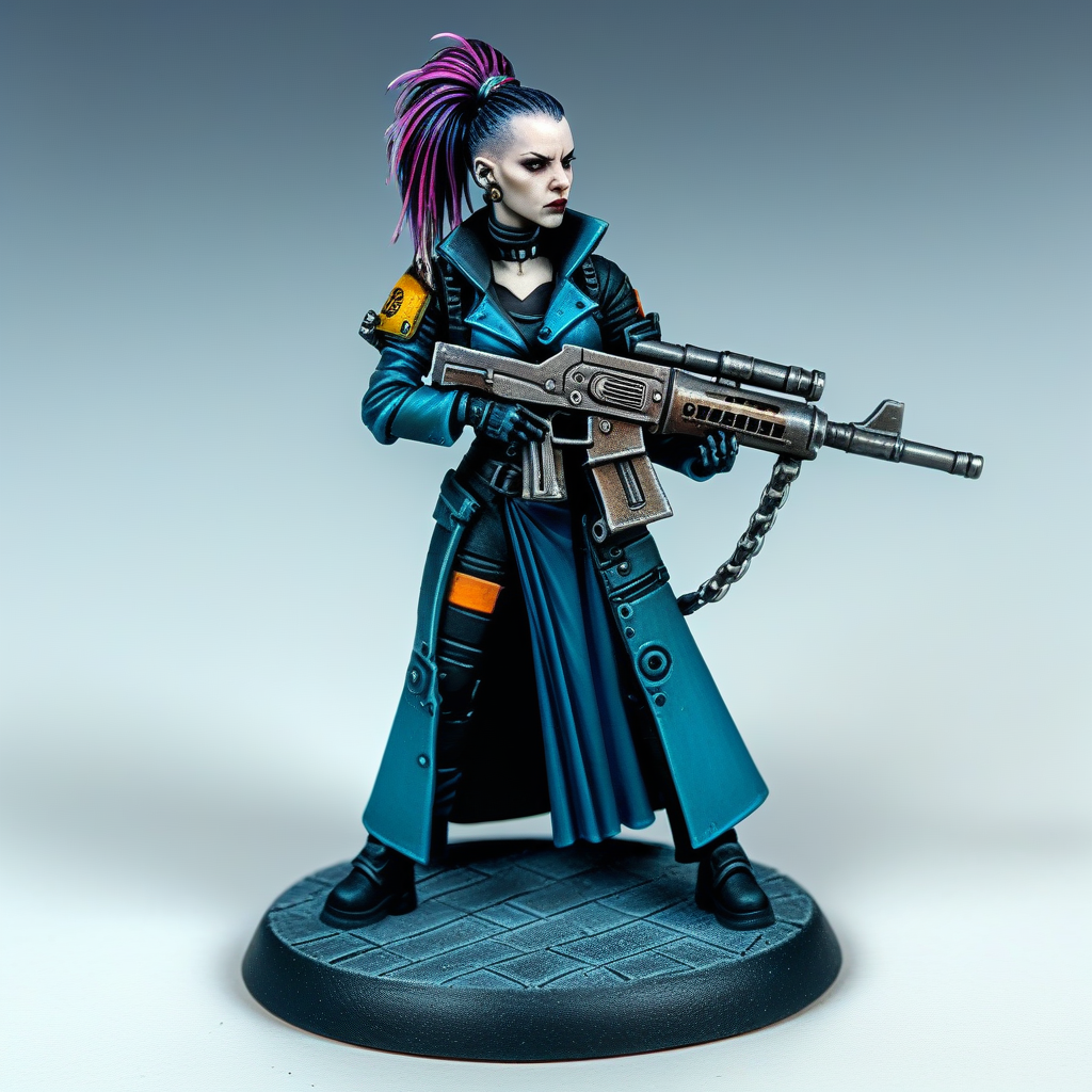 painted miniature of a cyberpunk goth girl holding an axerifle <lora:Miniature_XL:1>