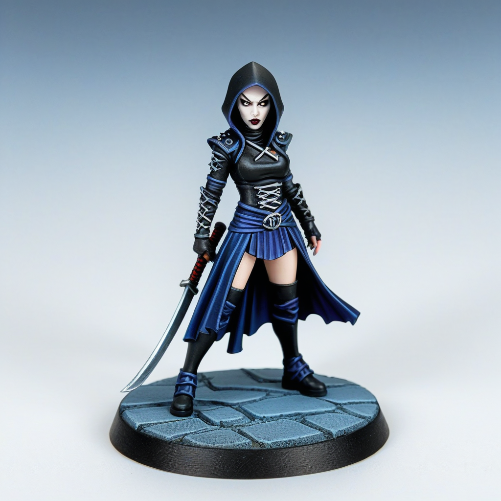 painted miniature of a goth girl ninja in latex miniskirt <lora:Miniature_XL:1>