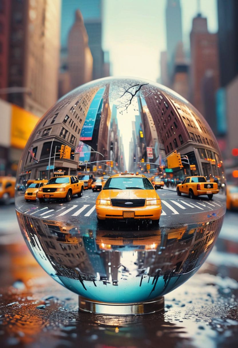 ultradetailed ultrarealistic, of a new york city in a glass sphere, a perfect photography by Mark Mann and Ashraful Arefin ,muted wet colors, intricate artwork masterpiece <lora:hyperkraximalism_v1-1:0.25>