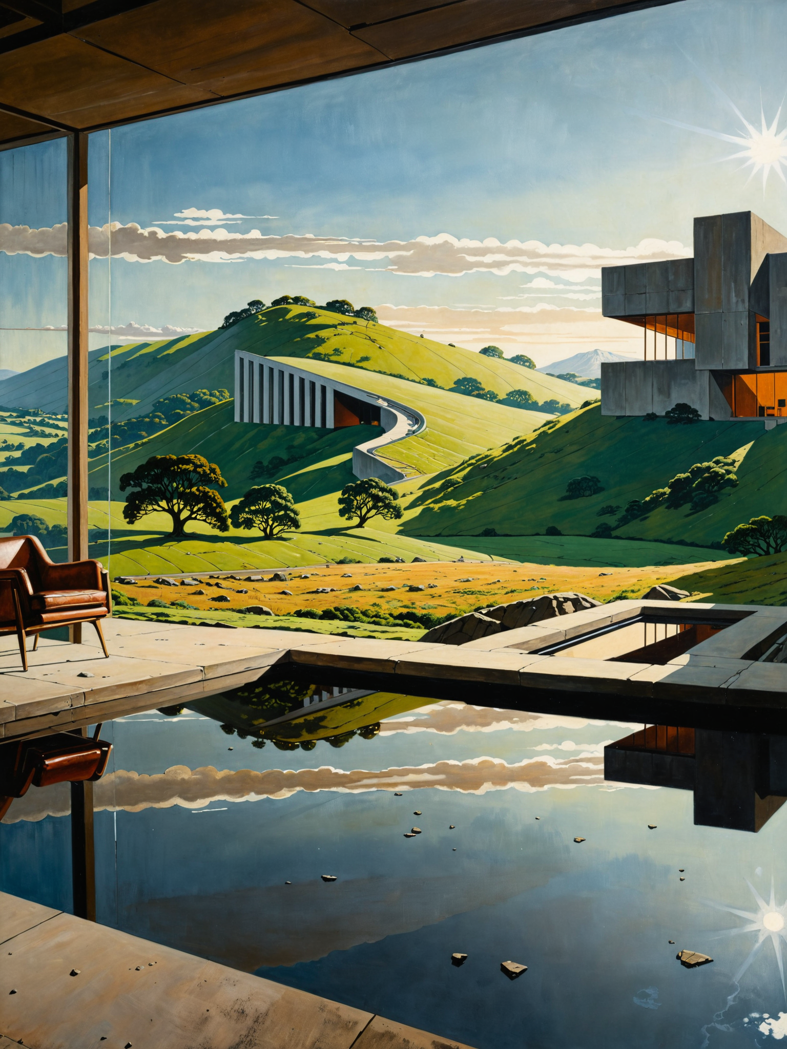 bleak, (dramatic:1.2), realistic, famous artwork by (Wally Wood:1.4), bold lines, beautiful painting, beautiful, fantasy, atmosphere with screen-space reflections, rolling hills, (architectural brutalism), studio lighting, by Seb McKinnon and Franz Sedlacek and P.A. Works, <lora:xl_more_art-full-xl:0.42426406871192845>, bbc earth, <lora:add-detail-xl:0.7071067811865475>