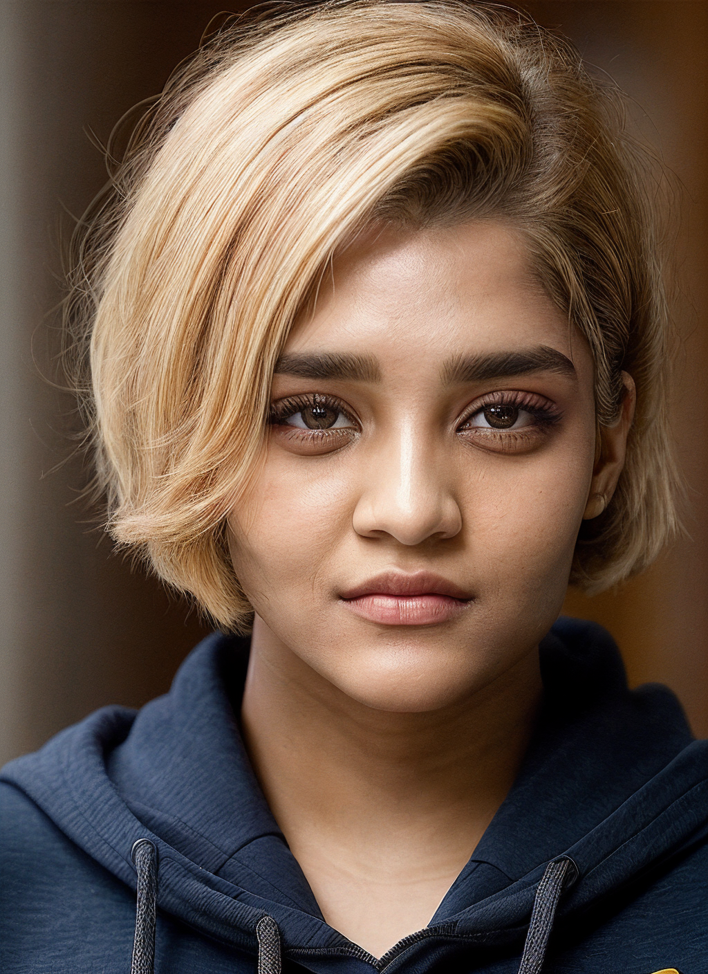 portrait of skswoman, lonely , wearing sweatshirt , with honey blonde Asymmetrical haircut , background haunted library epic (photo, studio lighting, hard light, sony a7, 50 mm, matte skin, pores, colors, hyperdetailed, hyperrealistic), <lyco:Ritika Singh:1.1>