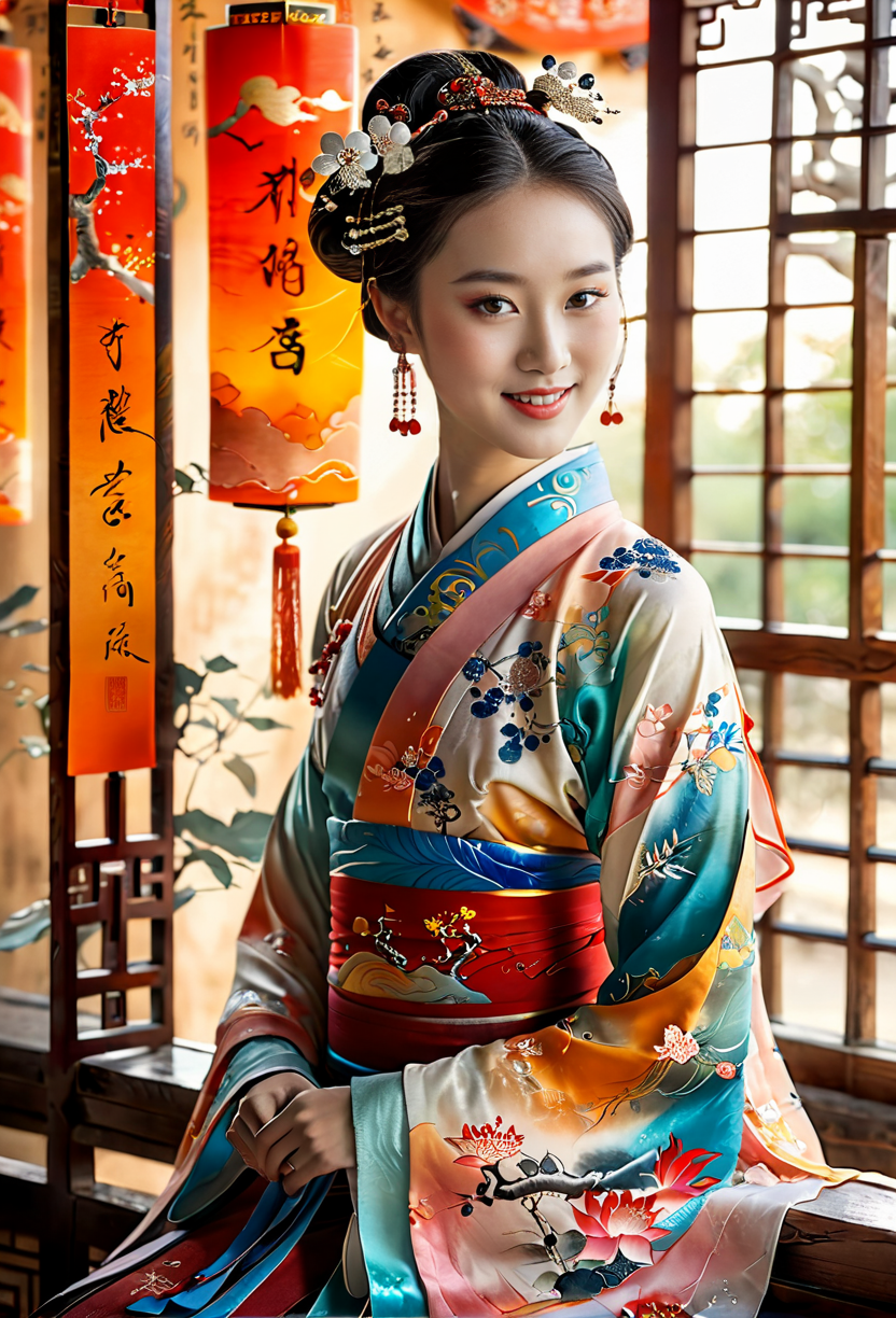 dunhuang,(look at the viewer:2),1girl,dunhuang,chinese clothes,updo,dress,hanfu,Bracelets,necklaces,smile,freckles,blush,innocentl,Porta 160 color,shot on ARRI ALEXA 65,bokeh,sharp focus on subject,shot by Don McCullin,Enrich the composition with soft,diffused natural light that accentuates the textures and colors,creating a timeless and culturally rich image,<lora:add-detail-xl:1>,<lora:lora:0.7>,. chinese ink,<lora:colorful-inkpainting:0.7>,colorful inkpainting,