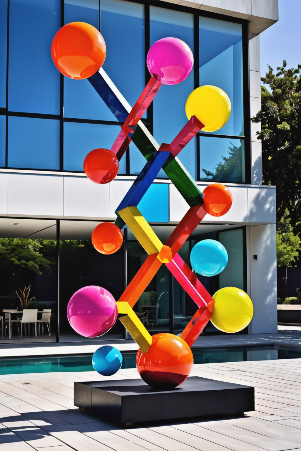 (Full view, complex, outdoor), (a superb Post-Pop Art Mobile sculpture art, colorful, vibrant ), (High quality, Highly detailed, Sharp focus, 8K UHD, Sigma sd Quattro, photography)
