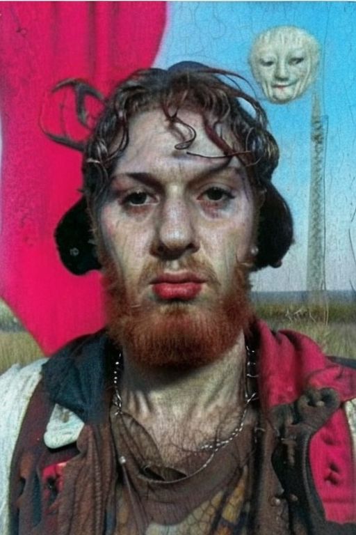 Weirdcore upper body and face of <ffurian> male man on trees on mud, (face portrait 1.6) angriest emotions, 90VHS, (ffurian man with beard 1.1) (y2k aesthetic 0.8), ms paint style <lora:ms-paint-lora:1> (rainy weather 1.2), <lora:y2kaesthetic:0.7>, half0ster, organic sculptures, red flag behind him <lora:hongse:0.9>