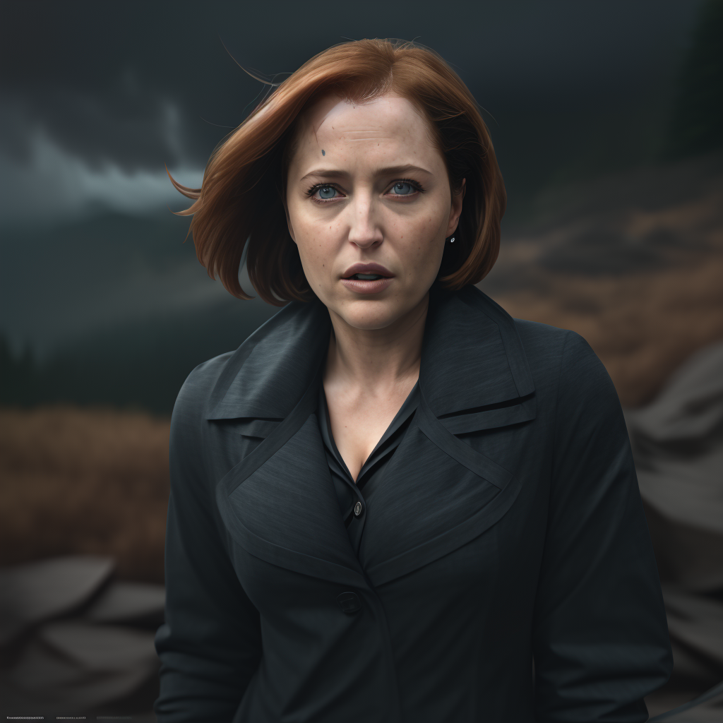 gilliananderson, an attractive woman, on a (mountain-top), wearing a (coat), (heavy-rainstorm:1.1), 24mm, 4k textures, soft cinematic light, adobe lightroom, photolab, hdr,