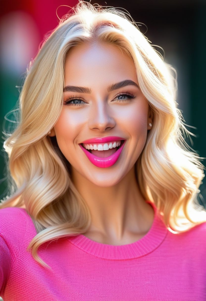 masterpiece, best quality, 8k, Amazing sexy blonde girl with deep hot face, (pink tongue out:1.05), wide smile, sensual outfit, hand palms pov