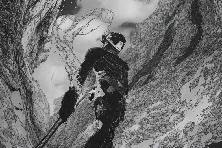 drawing in the style of tsutomu nihei, manga, monochrome, grayscale, bold lines