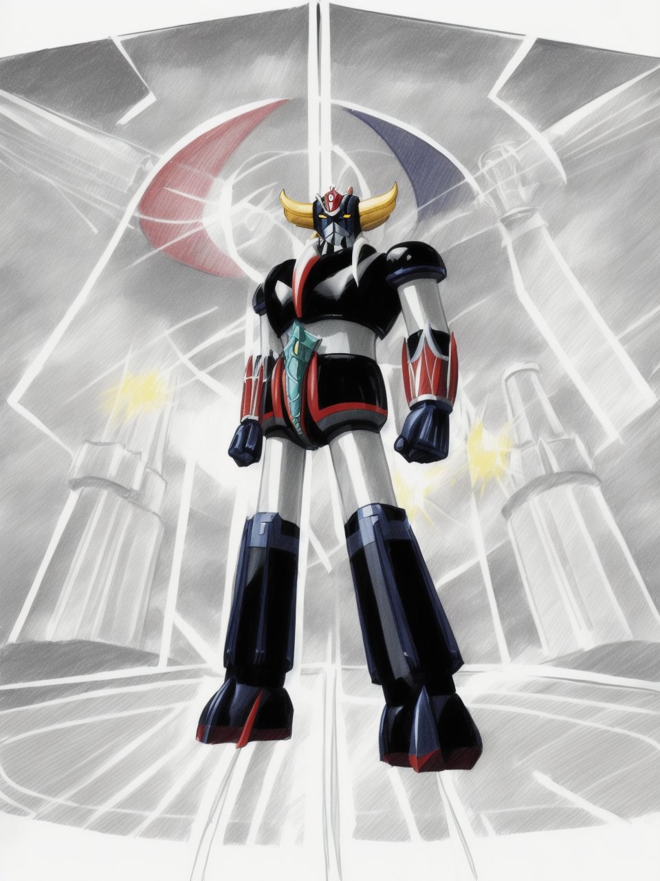 <lyco:goldorak_v1.0:1> (elaborate sketch:1.3), goldorak, majestic background