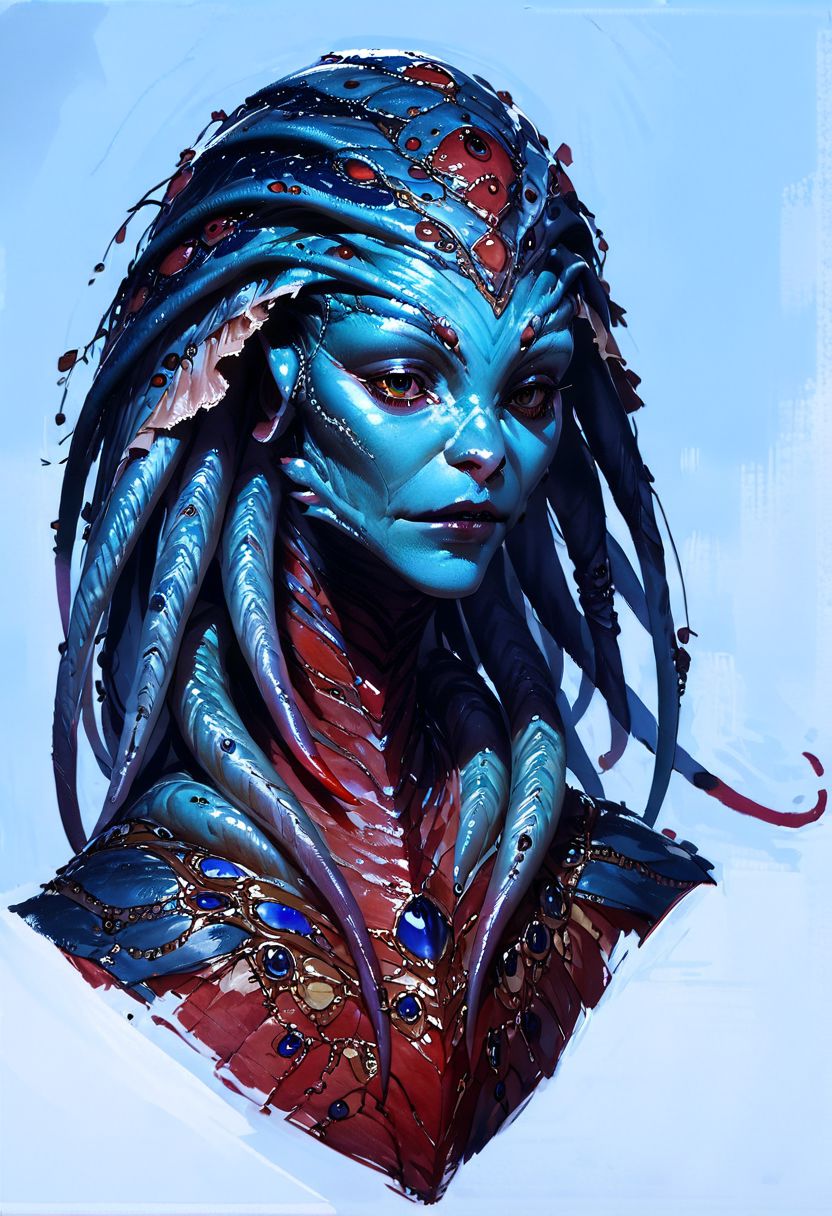 score_9, score_8_up, score_7_up, source_anime, high detail, concept art, detailed, traditional media, painterly, anthropomorphic, unusual creature, creature, made of opal, human facial features, beautiful alien, graceful