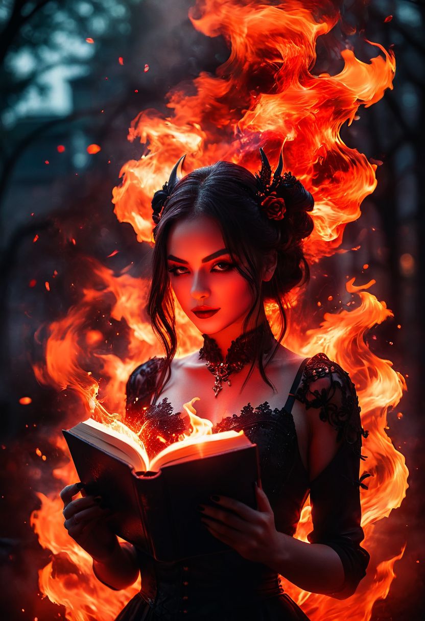 A detailed dramatic illustration of the book , with red color dark magic splash, a sexy demon girl, dark gothic, 3D Vector Art, fantasy art, watercolor effect, bokeh, Adobe Illustrator, hand-drawn, digital art, flaming hands, isometric style, retro aesthetic, focused on the character, 4K resolution, photorealistic rendering, using cinema 4D Wide range of colors., Dramatic, Dynamic, Cinematic, Sharp details Insane quality. Insane resolution. Insane details. Masterpiece. 32k resolution. <lora:add-detail-xl:0.95> <lora:dvr-lnds-sdxl:0.3> dvr-lnds-sdxl <lora:MJ52:0.25> <lora:ral-apoctvisn-sdxl:0.3> ral-apoctvisn <lora:zavy-cntrst-sdxl:0.35> dark, chiaroscuro, low-key <lora:zavy-rmlght-sdxl:0.41> zavy-rmlght <lora:SDXLFaeTastic2400:0.225>