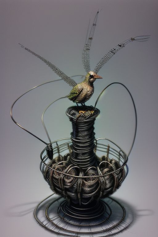 ((((wire bird, wire world, all objects are made of wire))))), masterpiece, best quality, highly detailed, clarity, elegant, lots of details, very high resolution, contrast, filigree, emotional, touching