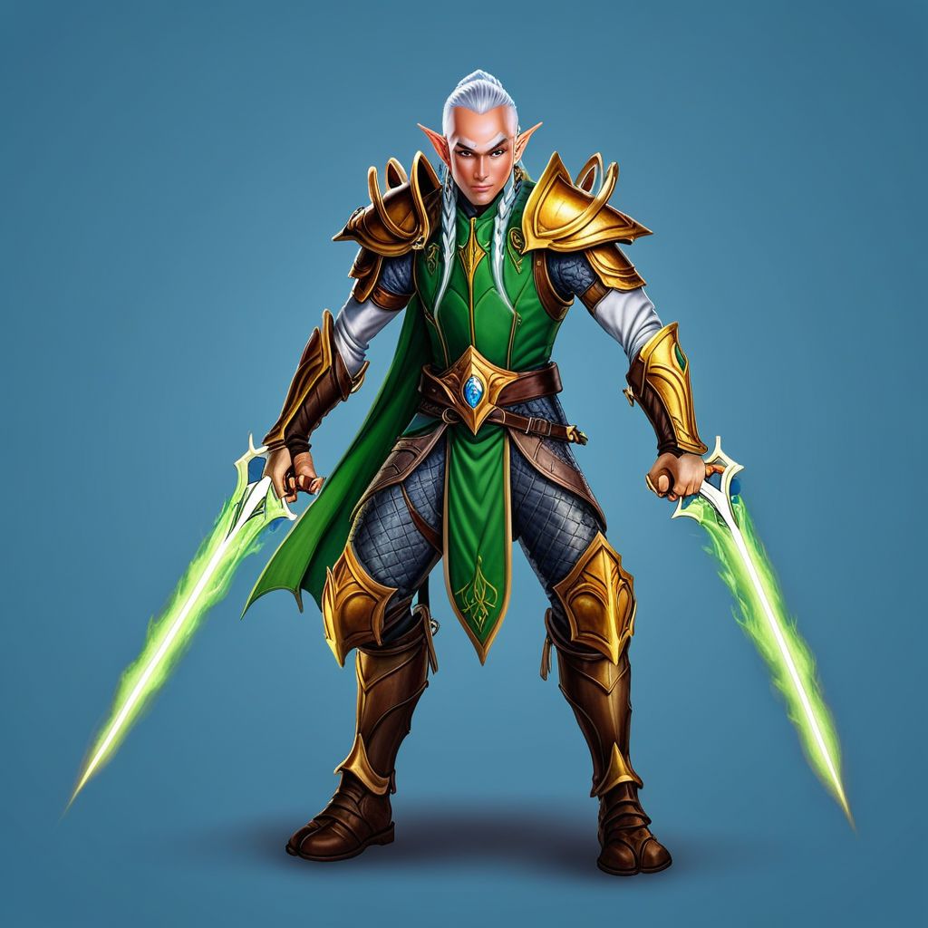 1man, elf warrior, holding weapon psyblade, cartoony realism