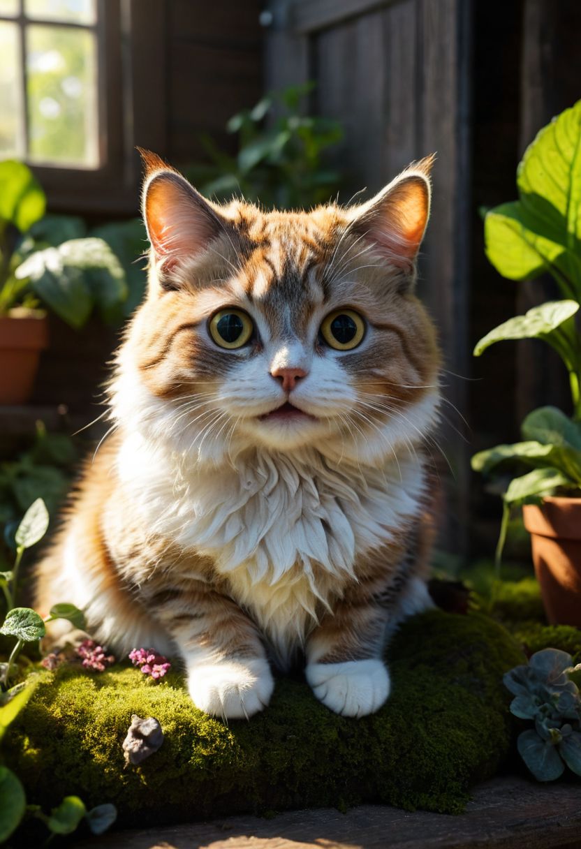 amazing quality, masterpiece, best quality, hyper detailed, ultra detailed, UHD, perfect anatomy, dof, portrait, awesome, inspiring, Expressiveh, realistic, high quality, 4K, absurd resolution, incredibly detailed, masterpiece, sharp, cute cat house garden, cute, happy, extremely detailed, no humans, extremely detailed scales, sunlight, realistic, high quality, detailed, shadows, glowing, bright colors, high contrast, vivd lighting, cinematic composition, soft shadows, national geographic style,