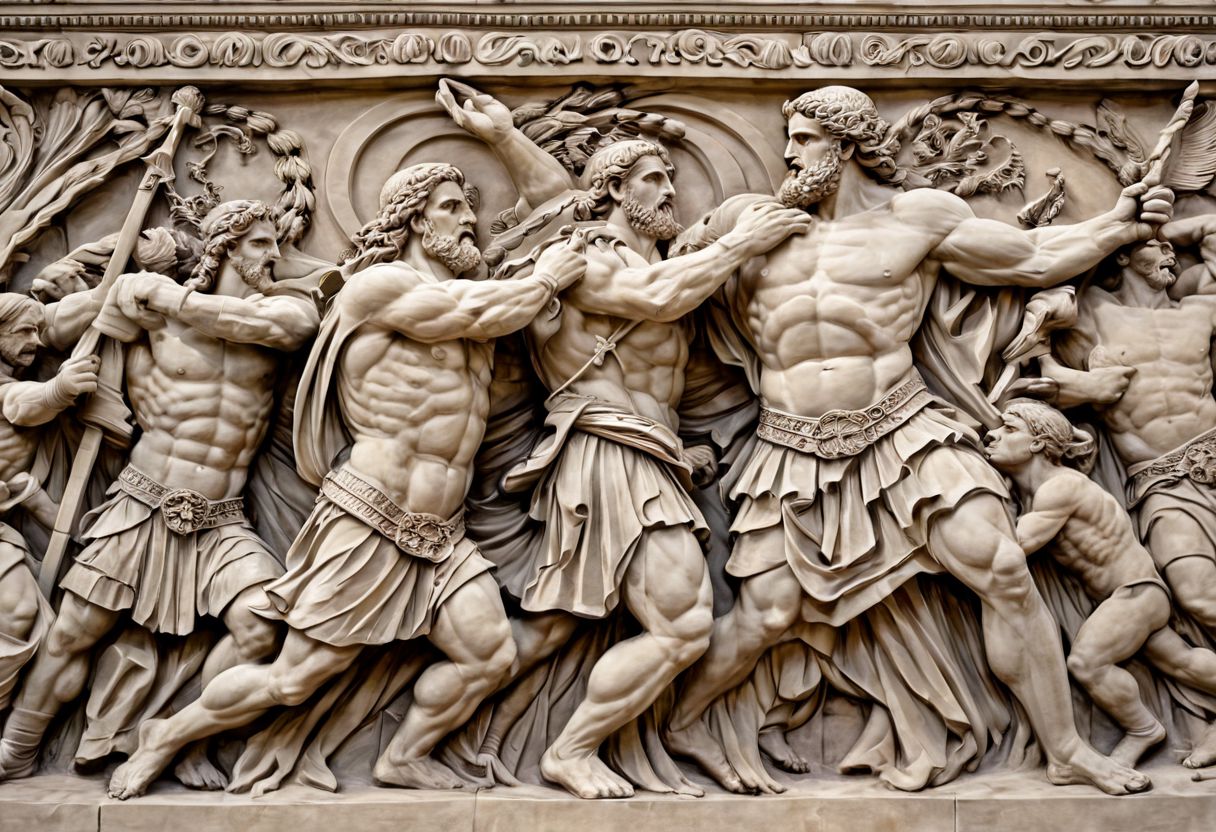 Battle of gods with giants. Visual reconstruction of the bas-relief of the Pergamon altar.