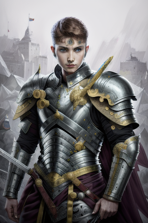 (original painting:1.3), <lora:100_yuanhua-10:1>, A prince in battle armor, with a sword in his hand, best quality, highly detailed, looks ferociously at the enemy, The facial details are extremely stylistic, Extremely delicate face, extremely delicate picture, extremely rich in detail, 4K, HDR