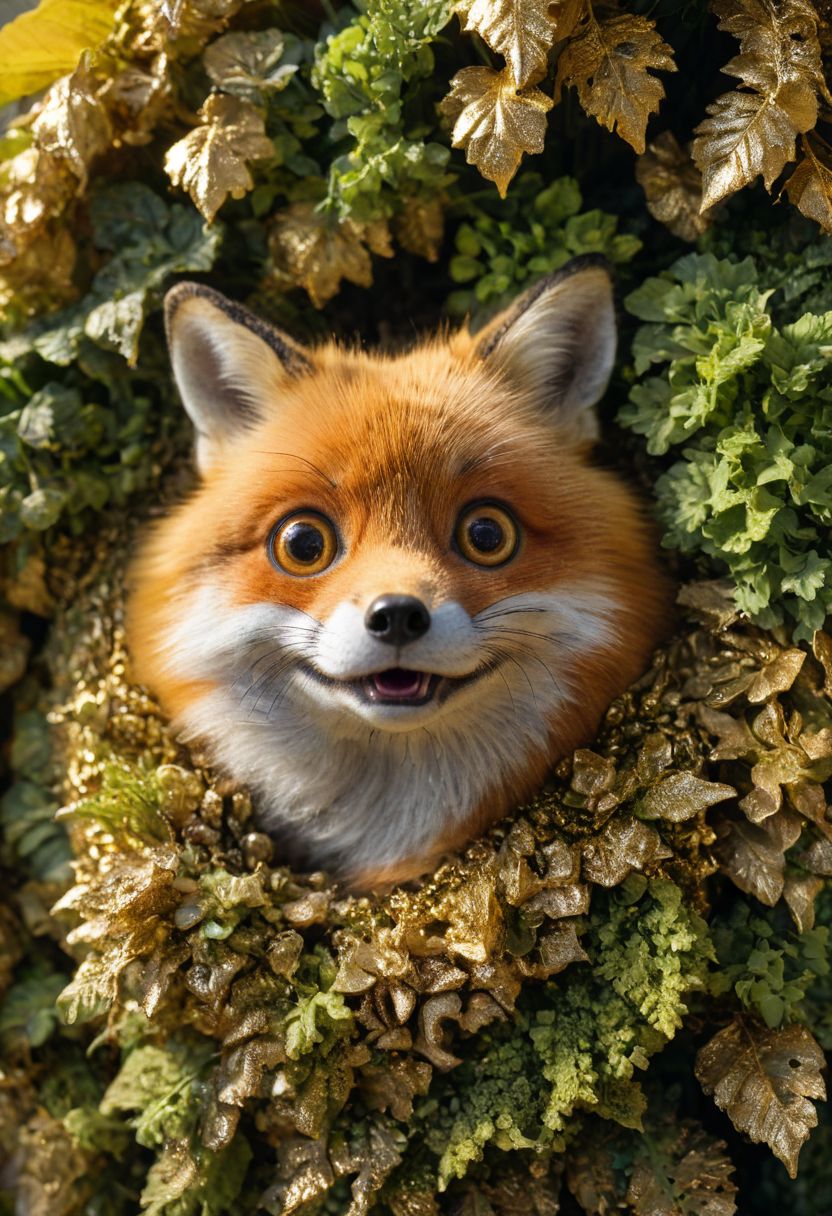 amazing quality, masterpiece, best quality, hyper detailed, ultra detailed, UHD, perfect anatomy, dof, portrait, awesome, inspiring, Expressiveh, realistic, high quality, 4K, absurd resolution, incredibly detailed, masterpiece, sharp, (too cute fox house garden:1.6), (so cute:1.5), (big round eyes, cute eyes:2), happy, extremely detailed, no humans, extremely detailed scales, sunlight, realistic, high quality, detailed, shadows, glowing, bright colors, high contrast, vivd lighting, cinematic composition, soft shadows, national geographic style, (view from above), (close up:1.5), (gold magic fur:1.5)