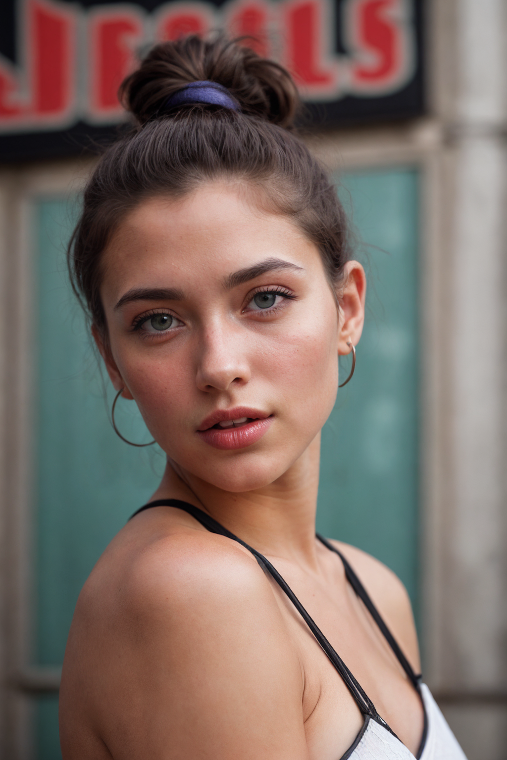 hyperrealistic art analog film photo (Photorealistic:1.2), (French street artist with funky pixie cut and mischievous brown eyes), (Urban backdrop, wearing eclectic streetwear), (Creative spirit with a rebellious edge), (Transforming city walls into vibrant works of art)., faded film, desaturated, 35mm photo, grainy, vignette, vintage, Kodachrome, Lomography, stained, highly detailed, found footage, high quality photography, 3 point lighting, flash with softbox, 4k, Canon EOS R3, hdr, smooth, sharp focus, high resolution, award winning photo, 80mm, f2.8, bokeh . extremely high-resolution details, photographic, realism pushed to extreme, fine texture, incredibly lifelike, ((photographed by Sports Illustrated))