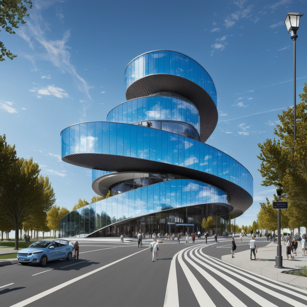 mabuilding, (modern), no humans, outdoors, building, sky, tree, road, scenery, car, motor vehicle, real world location, ground vehicle, city, street, lamppost, crosswalk, day, cityscape, skyscraper, sign, traffic light, ((glass architectural facade:0.8)) blue sky, <lora:zahahadid:0.6> <lora:nightbuilding:0.4>