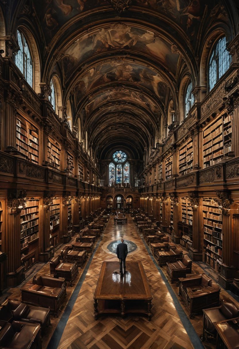 The Library! ((Intense cinematic photograph, menacing, imposing, masterful, intricately detailed, very detailed background scenery) BREAK ,((uhd, 8k photograph taken with Sony A7R III, 10sec at f/5.6, ISO 20,000, 12-24mm f/4 at 12mm, slow shutter speed to capture motion blur, experimental angles, experimental lighting, perfect composition, award winning Getty Images photograph, full-length photograph, high angle looking down)) ng_deepnegative_v1_75t, epiCRealism, Ellis-RealismBoost