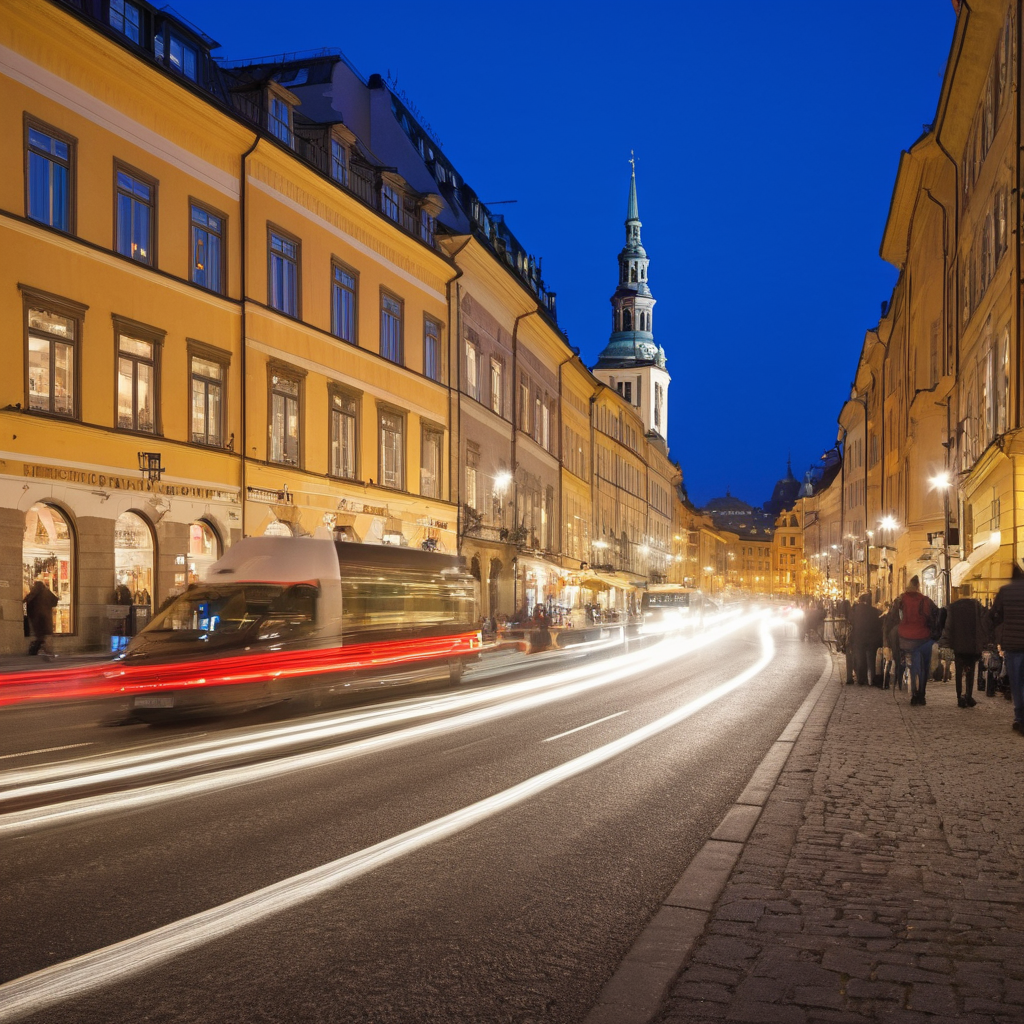 Magazine cover photo of the fanciest stockholmer main avenue at night, crowd, cars, vibrant colors, (studio lighting:1.5), motion blur, best of the best, masterpiece, high quality, <lora:add-detail-xl:2.0>