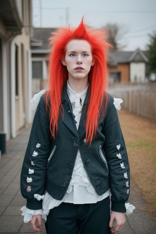 (eccentric:1.4) 23 year old redhead woman, short ruffled (fluorescent:1.1) hair,
