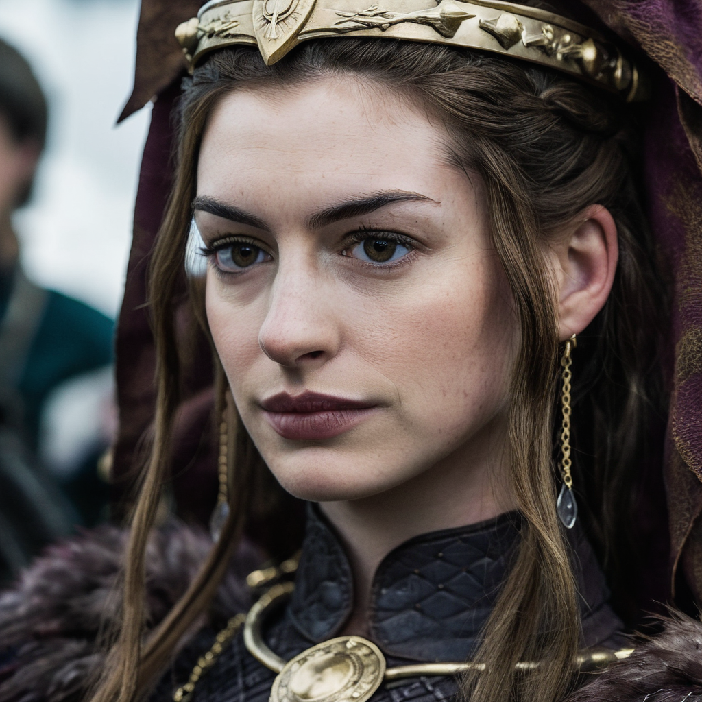 Skin texture, Closeup portrait photo of a stunning young woman dressed as a highborn noble from game of thrones,f /2.8, Canon, 85mm,cinematic, high quality, looking at the camera, anxhthway, <lora:anhathaway_juggerX_xl_1_standard_wocap_merger_56prev_51_72_04_03_03-anxhthway:1.0>