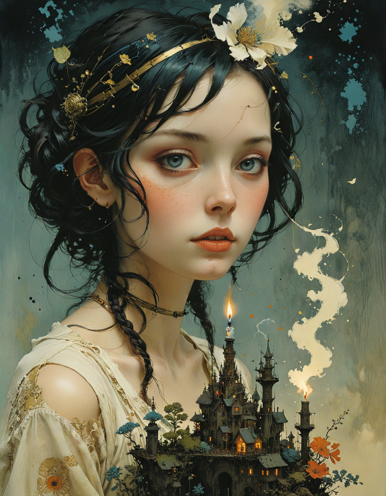 (by Sergio Toppi and by Jessie Willcox Smith:1.5), enchanting, circuit, incense, plasma, scroll, evolving, hybridize, dreamy, lucid, conjure