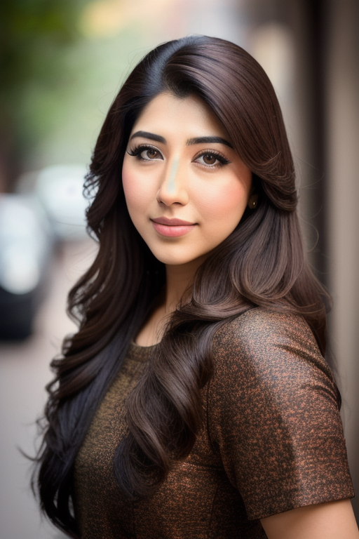 a professional portrait photo of a 27 year old sonarikabh women, with light brown eyes, black hair, highly detailed features, city bokeh background, perfect eyes,