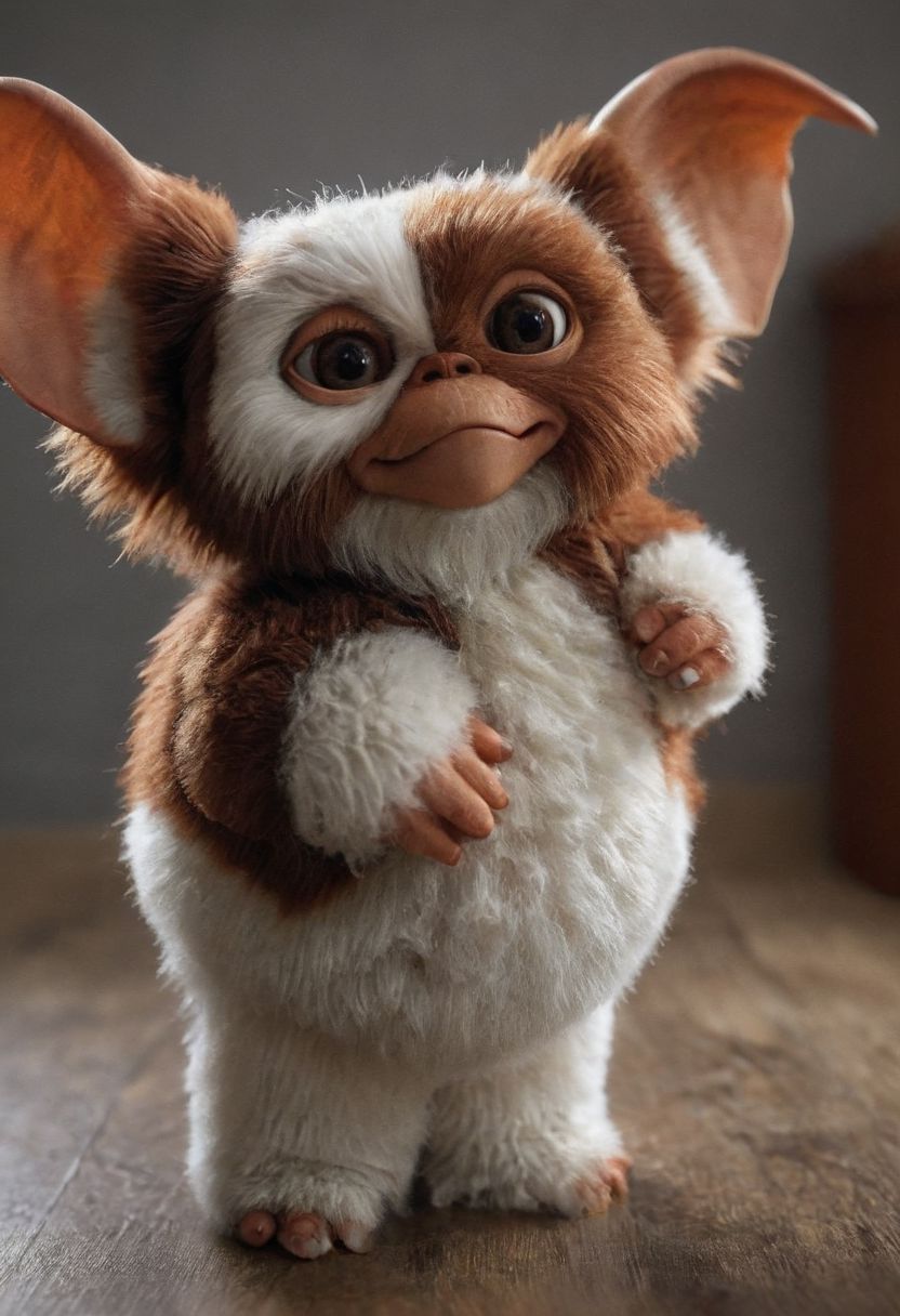 amazing quality, masterpiece, best quality, hyper detailed, ultra detailed, UHD, perfect anatomy, portrait, dof, hyper-realism, majestic, awesome, inspiring, - a fluffy cute #giz# gizmo( inspirated in alf:2.3), cinematic composition, soft shadows, national geographic style, sharp focus