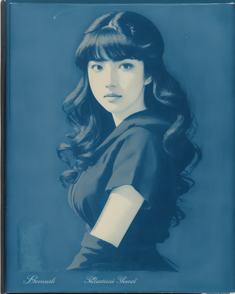 a beautiful 25 year old woman by algae_cyanotype <lora:algae_cyanotype:1>, by Kentaro Miura