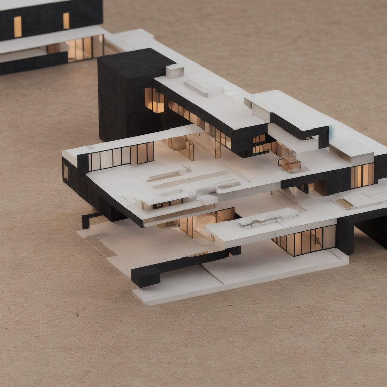 modern architecture, house, Corbusier style, handmade model style, detail close-up, 4k, black background, depth of field, bird 's-eye view <lora:handmodel:1>