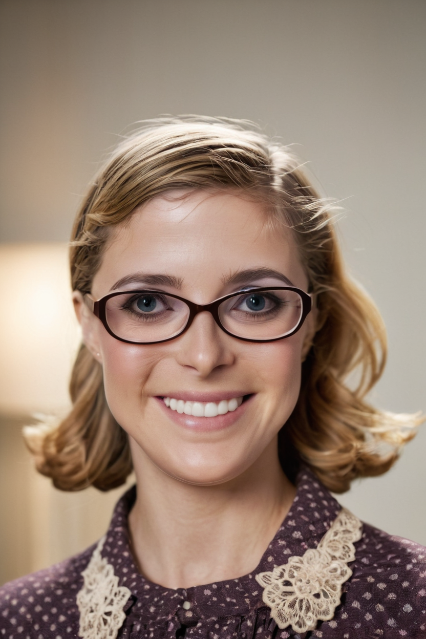 penny pax in glasses a polished consultant with heartwarmingbut confident smile. The focus is sharp on her presentable eyes with a soft bokeh background that creates a shallow depth of field. Her hair framing her face in a polished manner. The image has a soft colors tone with a natural light setting captured with polaroid sx-70 alpha camera by julia margaret cameron. <lora:pennyPax:1> . 35mm photograph, film, bokeh, professional, shot by hans de kort, 4k, highly detailed