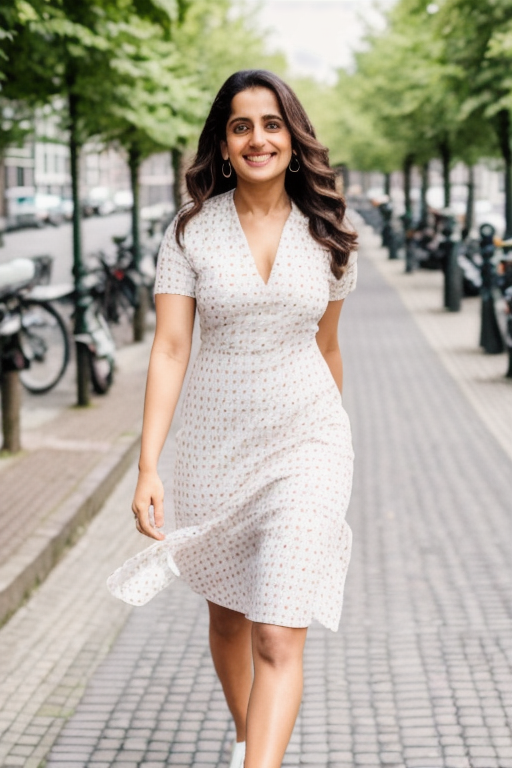 photo of a <lora:priyaba:0.5> priyaba, fare skin wearing a white sort summer dress, amsterdam background, cute smile, realistic skin, detailed skin texture, (blush:0.5), (goosebumps:0.5), subsurface scattering, (8k, RAW photo), realistic, full body , walking on middle of street