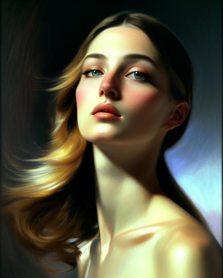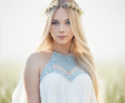 Portrait (detailed ((young woman, blonde long hair, blue eyes))), full body, white dress, toned abs, by Olivier Ledroit, by Carne Griffiths, beeple, artgerm, smooth, oil on canvas, pltn style, vector, softbox, TXAA, shimmering light, trending on artstation, pixiv polycount art, behance hd, lightwave, organic tracery, lace, sharp focus, ultra detail, 8K resolution