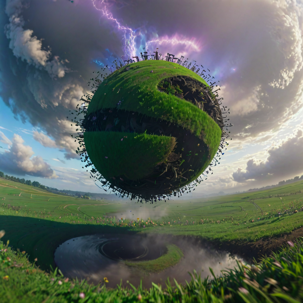 anime key visual, majestic, eye-level shot of a Upside down Asymmetrical ("The Whirlwind of Instinct":1.3) , lush flower field and Asteroid in background, Foggy conditions, equirectangular 360, Fine art, Tranquil, Nintencore, Indirect light, telephoto lens, Monochrome, expressive brush strokes, Instagram, trending on artstation, arthouse